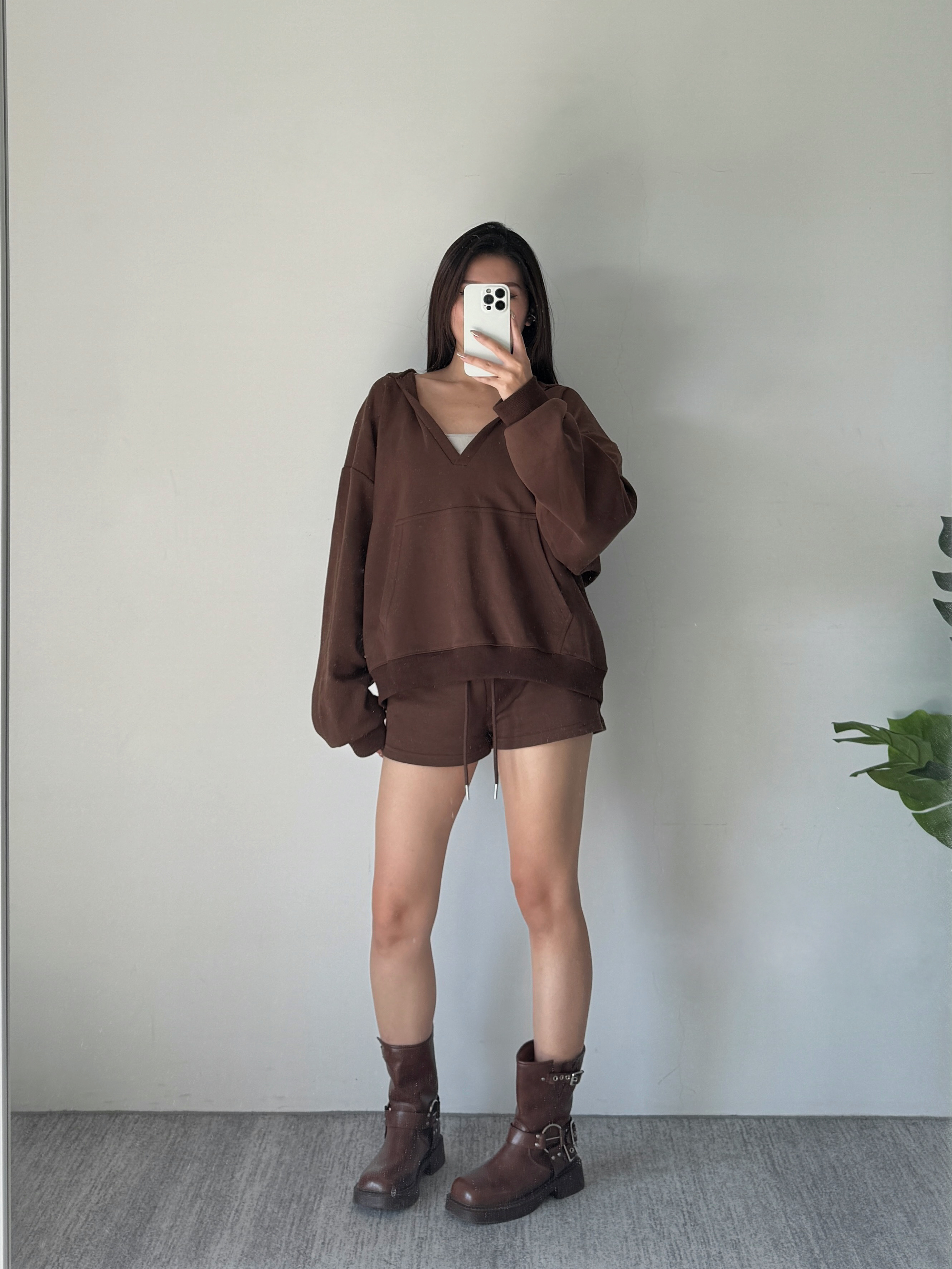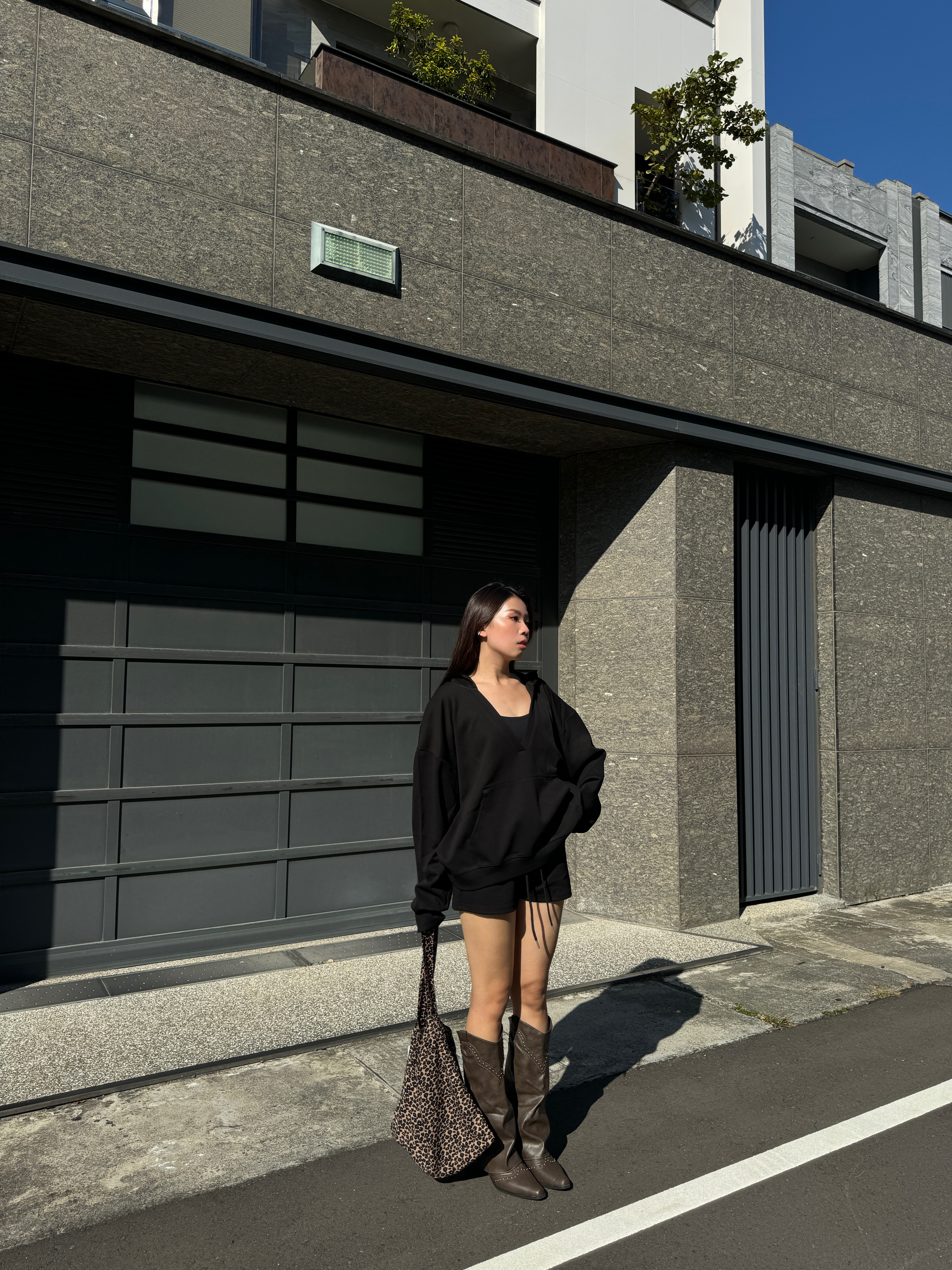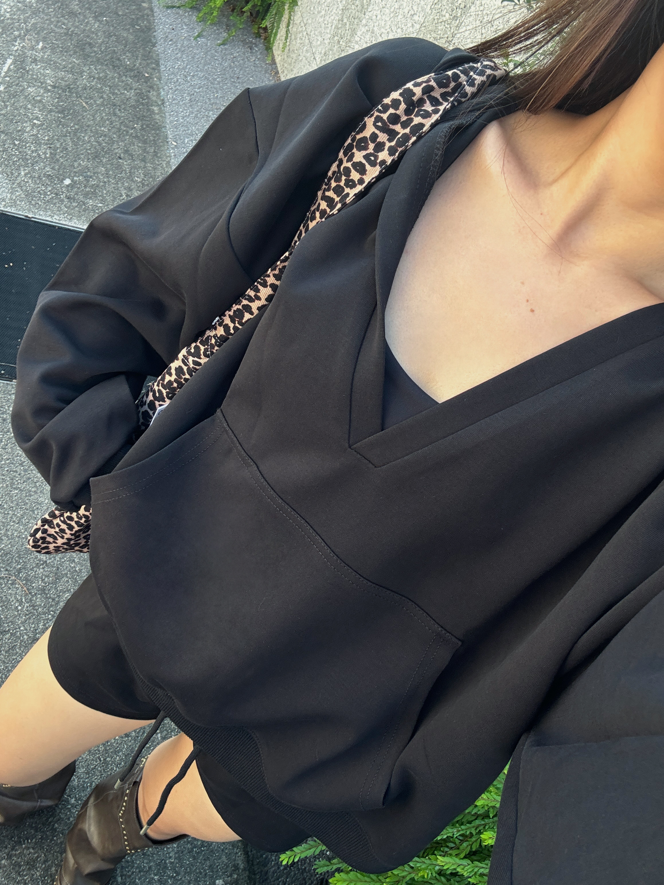 時髦大連帽+V領設計