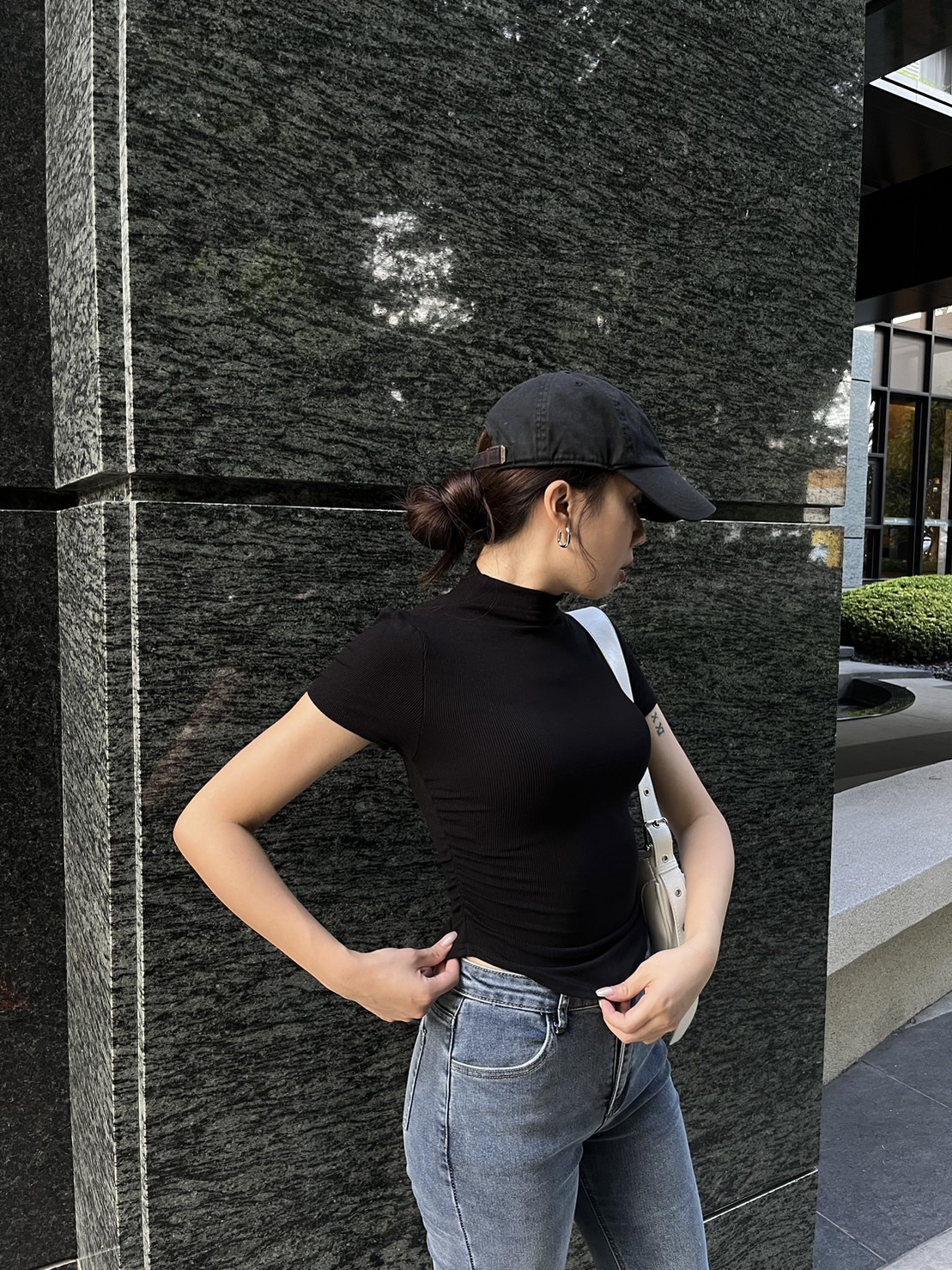 半高領圓弧彈力短袖上衣(4色)