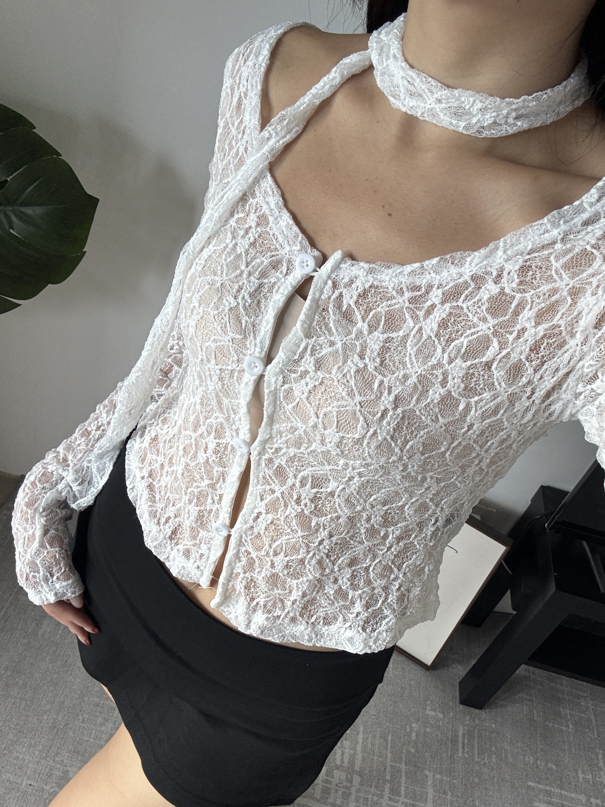 附脖帶🦢蕾絲排釦開衫上衣(2色)
