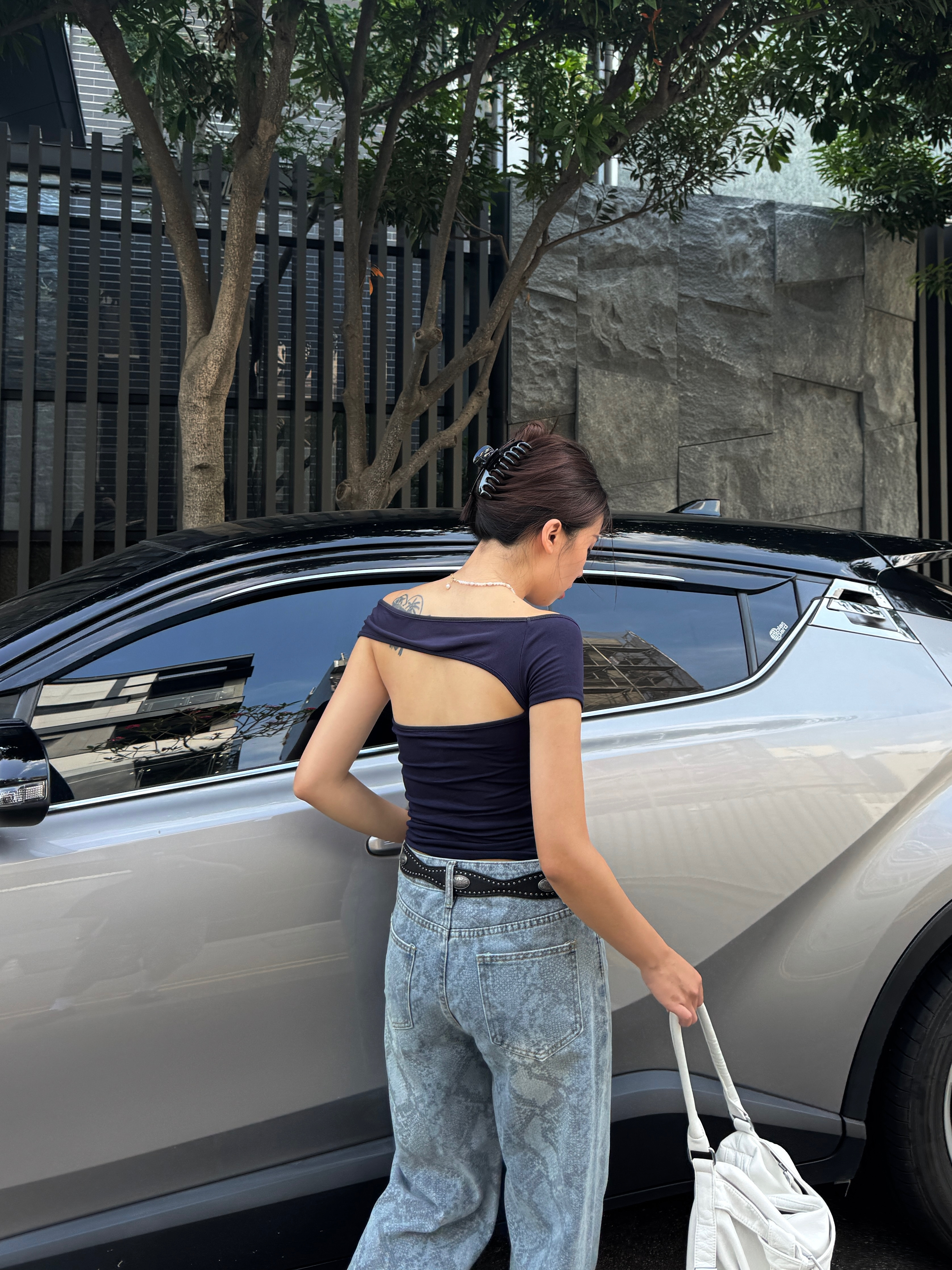 這次是斜肩+鏤空的設計